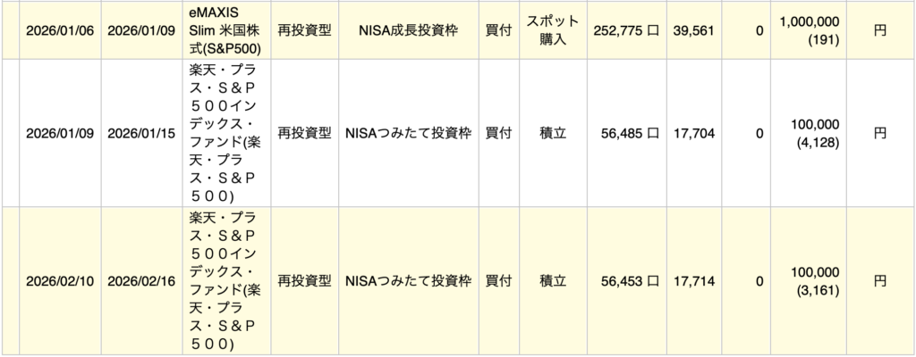 僕のつみたてNISA買付実績(2026年2月)